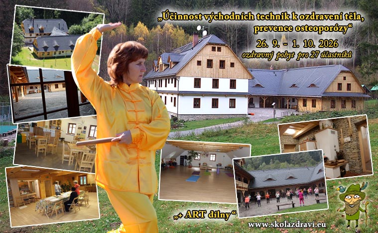 Nový 5 denní pobytový více tematický kurz “Účinnost východních technik k ozdravení těla, prevence osteoporózy” v Moravskoslezském SEV Švagrov – v CHKO Jeseníky, od 26. září až 1. října 2026.