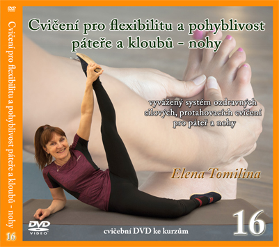 DVD č.16 s názvem “Cvičení pro flexibilitu a pohyblivost páteře a kloubů – Nohy” obsahuje vysoce žádané sestavy pro prohřátí a protažení celého těla. Jde o vyvážený systém ozdravných silových, protahovacích cvičení pro páteř a nohy. Aerobní cvičení se silovým zatížení přispívá k tvorbě svalové tkáně, zlepšuje funkci a trénuje vytrvalost kardiovaskulárního systému a zlepšuje metabolismus. Protahovací cvičení poskytují flexibilitu a pohyblivost páteře a kloubů. Stejně jako u předchozího DVD je sestava zacvičena bez komentáře.