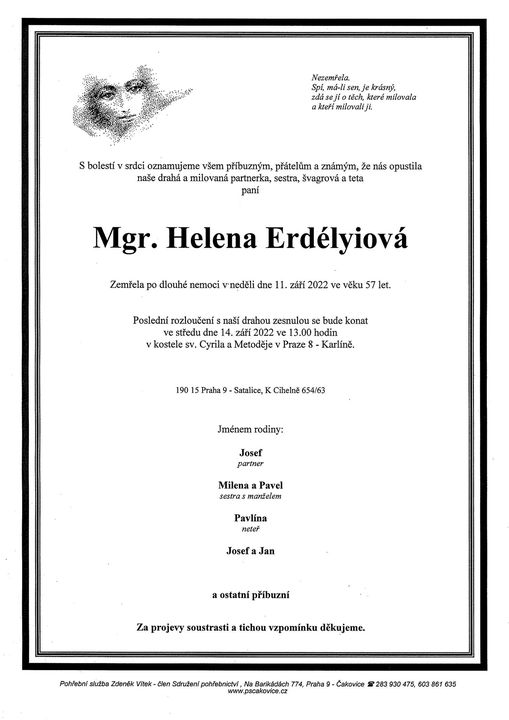 S velkým zármutkem vyjadřujeme upřímnou soustrast pozůstalým. Elena Tomilina a já, Leoš Lacina nemůžeme tomu uvěřit, že naše milovaná kamarádka, Helenka Erdelyiová, najednou není. I když jsme věděli, že se potýká s dlouhou nemocí, věřili jsme, že se z ní dostane.